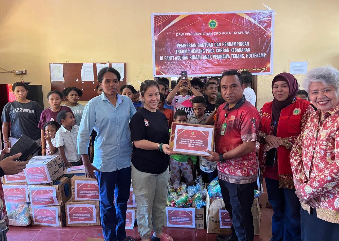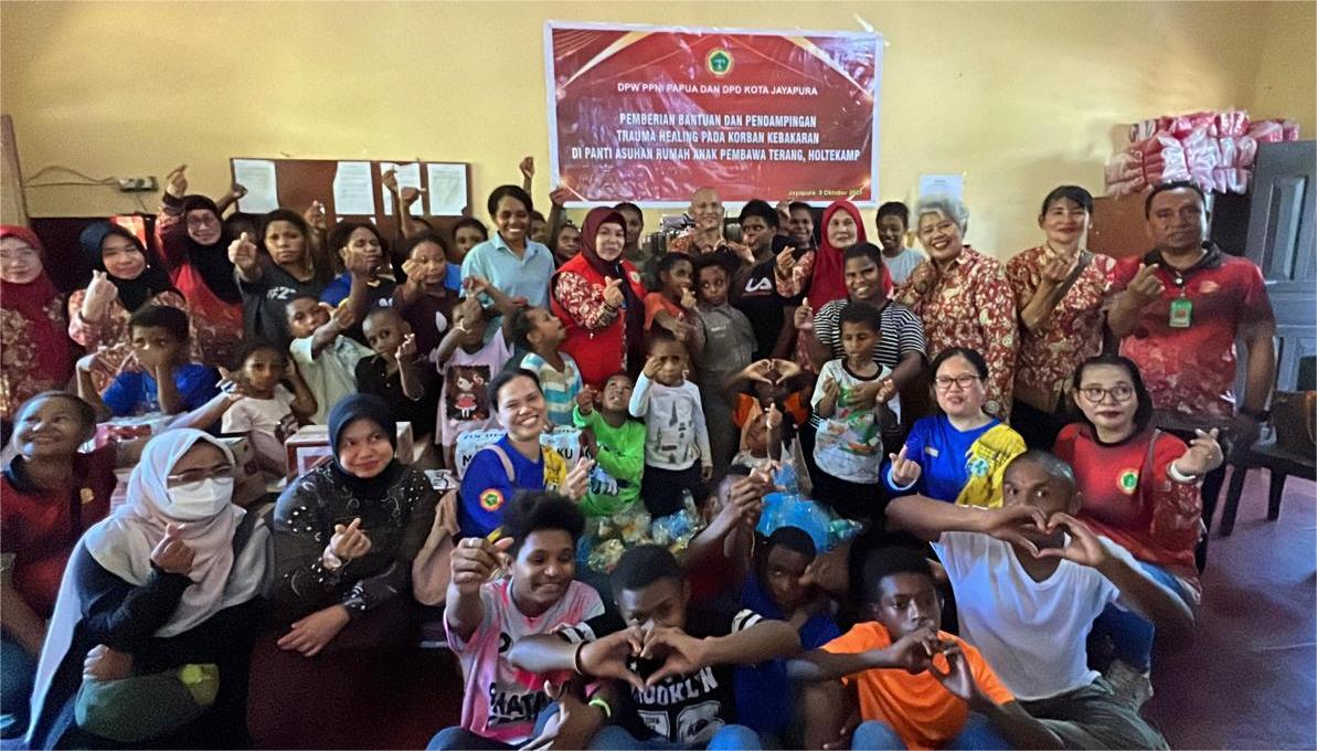 Dimana kolaborasi DPW PPNI Papua bersama DPD PPNI Kota Jayapura dan DPK PPNI di Kota Jayapura memberikan bantuan dan pendampingan trauma healing bagi Panti Asuhan “Pembawa Terang Holtekamp di tempat penampungan SPN Polda Papua, Jumat (3/10/2025).