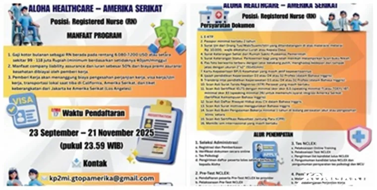 Dimana Pemerintah Kabupaten Muba, melalui Dinas Tenaga Kerja dan Transmigrasi (Disnakertrans), kolaborasi bersama BP2MI membuka pendaftaran untuk penempatan tenaga kerja Perawat profesional (Registered Nurse/RN) ke Amerika Serikat, bekerja sama dengan Aloha Healthcare.